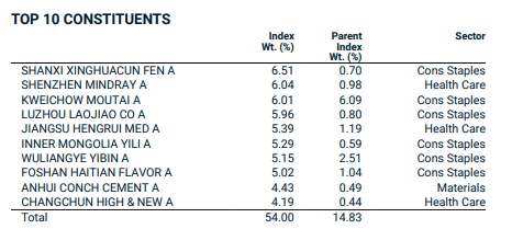 50只成分股的上证50里面,贵州茅台和中国平安都有超过10%的权重,结果上证50的茅和金融属性就很强。但这只ETF里,权重最高的山西汾酒权重不过6%多一点,更有利于体现整体的投资价值,而非被个别龙头所支配。