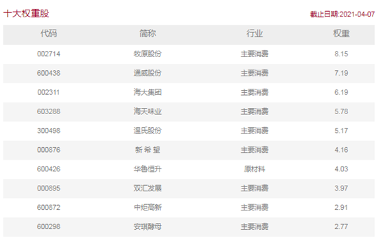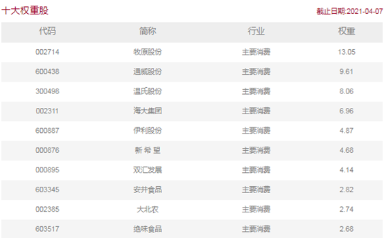 ,包含的农业范畴更广,权重分配更均衡,受龙头股影响更小,但总体没有大的变化,是一只投资主要消费领域不错的工具。