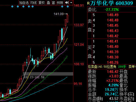 龙头股万华化学1月以来涨幅超过60%,股价突破140元!而板块其他成分股也同样涨幅巨大,而且还没有停下来的趋势!