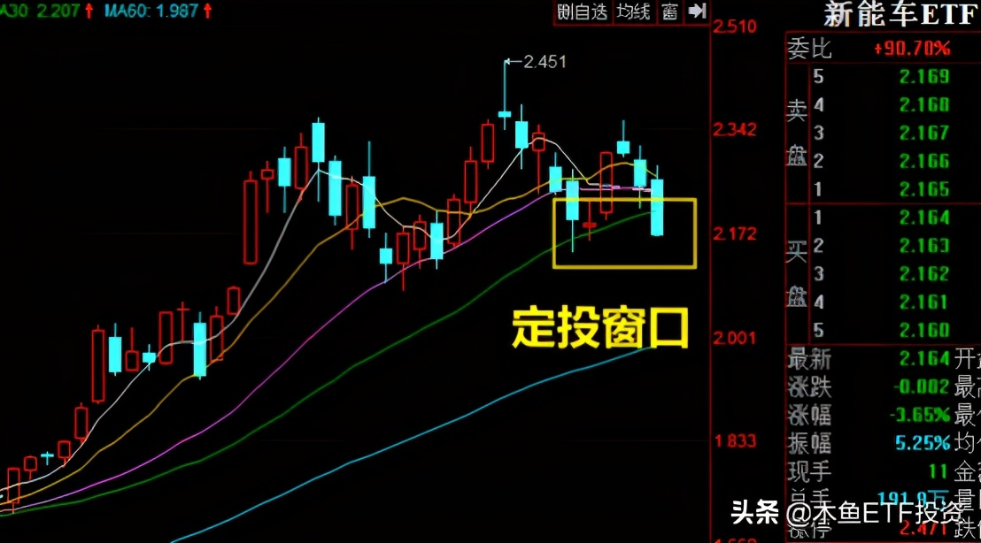 其实可以参考新能源汽车的走势,目前新能源汽车ETF处于我们设定的定投窗口内,整个主题正在构造一个新的平台。可以用木鱼的条件定投法,照葫芦画瓢定投新能源ETF。