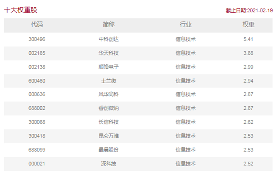 信息技术指数交易型开放式指数证券投资基金,也就是说,它的成分股全部来自于中证