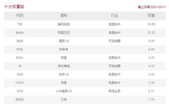 的权重。腾讯由于有南向资金抱团,其实走势总体是更强一些的。中概里面其他的美团、拼多多、百度,甚至快手等都是大家耳朵里听到很熟悉的名字。这些互联网巨头,由于有着强大的垄断优势,被资本看好。