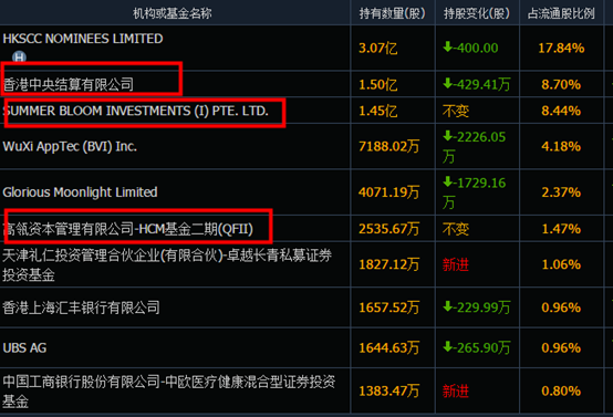 看看第一大权重股药明康德的股东列表,外资占比惊人,各路明星资金云集,这些资金不可能是打短线的,一定是看好药明康德长期的发展。这样的龙头股,跌下来自然有的是资金底部接筹,反弹速度也更快。