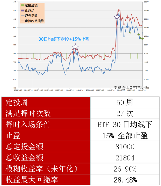 我们再换一种有择时机制的投法看看,均线定投+收益止盈法