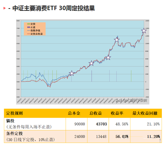 1. ETF的 30日均线下方持续了两周,每周定投5000元,本金一共10000元