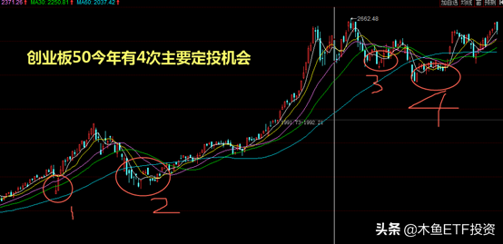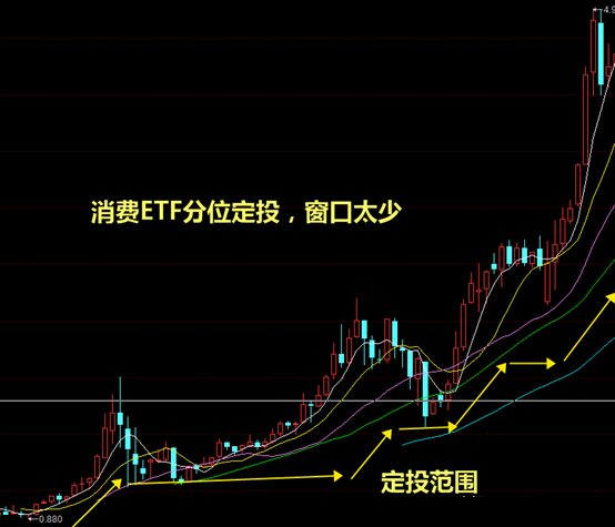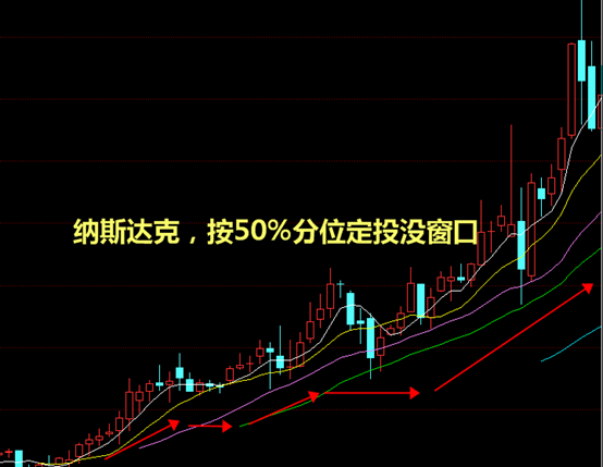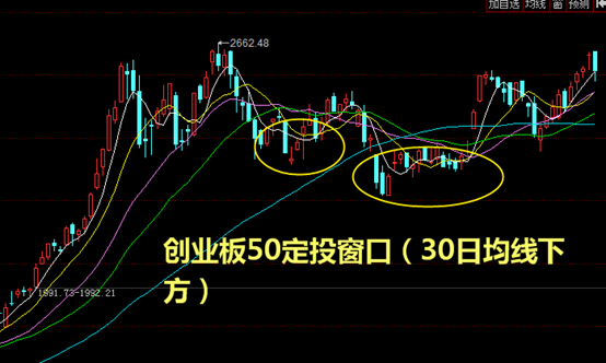 相对低位就是均线级别的低点,而非价格上的绝对低点。这有两个好处: 一是投资者看着均线就可以定投,而不需要计算价格区间;二是日线级别的窗口出现得更频繁,入场机会更多,便于定投。
