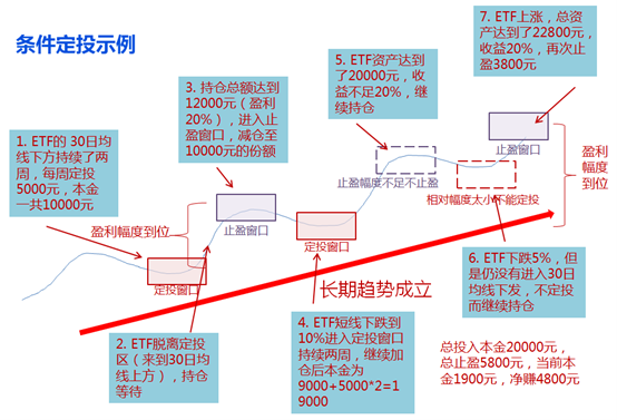 A股目前的态势,是长线慢牛的行情,而主力也会主动管理和维系这样的行情。说简单点就是长线向上的震荡行情,这点是大多数人的共识。这种情况下,我们选择条件定投来参与行情。目标是在震荡行情,把握波谷低吸机会,等待波峰盈利机会,实现长赢!