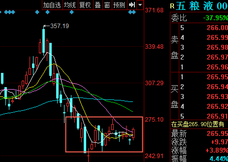 如果看看五粮液,也是如此。从近期白酒股的走势来看,主力资金在目前区域做高抛低吸成为主要动作。市场最强共识的白酒如此,对于其他估值压力更大的板块,在目前形势下,我们很难有太高的反弹预期。