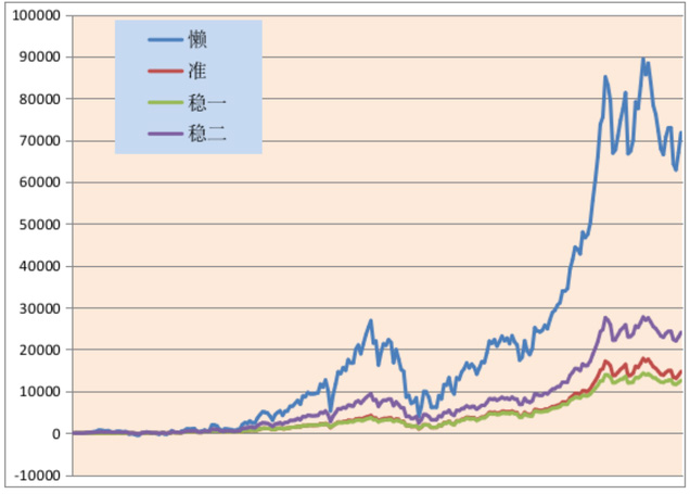 那么,从上面图来看,懒策收益是最高的,但是这里的问题是牛市不一定一直有,而且需要每周定投对资金量有要求,而准策和稳策则是牺牲了收益得到了更多的确定性。到底哪款适合您可以多思考一下!