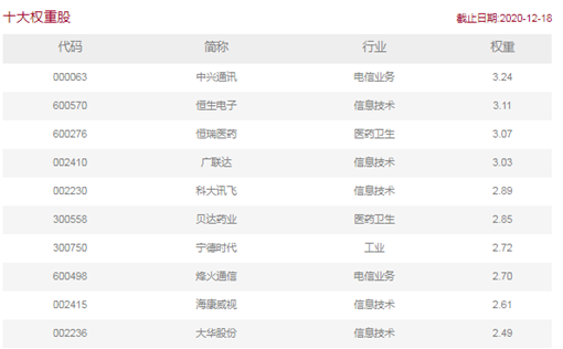 看看全部的成分股,我们可以发现,电子(芯片)和软件的权重明显提升,而确实让两大龙头新兴产业新能源汽车和光伏缺席了。