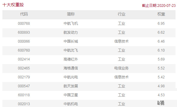 前十大权重股总权重48.71%,非常均衡。 第一大权重股中国重工主造舰艇,二龙头中航飞机主造轰炸机、军用运输机,都是根正苗红,而四当家就是当红龙头中航沈飞,舰载战斗机摇篮。