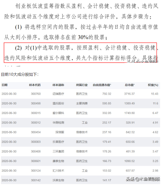 一句话总结这个指数的特点:就是创业板中的蓝筹股,更稳健!它的目标是确定性的投资机会!