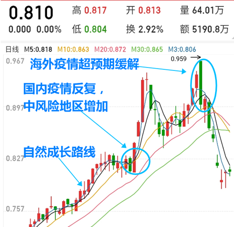 有着自己稳健的成长路径,但是随着国内疫情防控再趋紧张,短线投机资金蜂拥而入,连续大阳后出现回调压力。而春节前各地防控继续趋紧又加剧市场资金搏春节疫情反复的投机心理,但是不但春节没有出问题,海外疫情恢复速度更是远超预期,疫情所需要的医疗资源见顶。然后跟着市场一轮杀估值的节奏,调整到了现在。