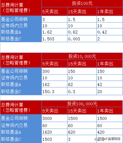这么一看来,联结C是很合算的,但是对基金公司来说很多时候就不太合算,因此很多ETF有发行联结A而没有联结C。