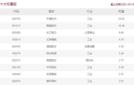 锂电和光伏因为其成分股市值巨大,在这只