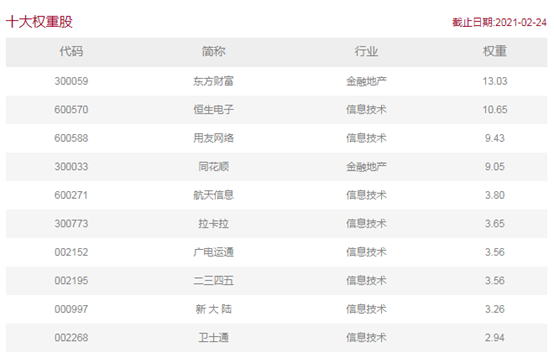从十大权重股来看。东方财富占据了第一大权重的宝座。有的朋友问,东方财富不是券商么?其实东方财富是不折不扣的金融科技企业。
